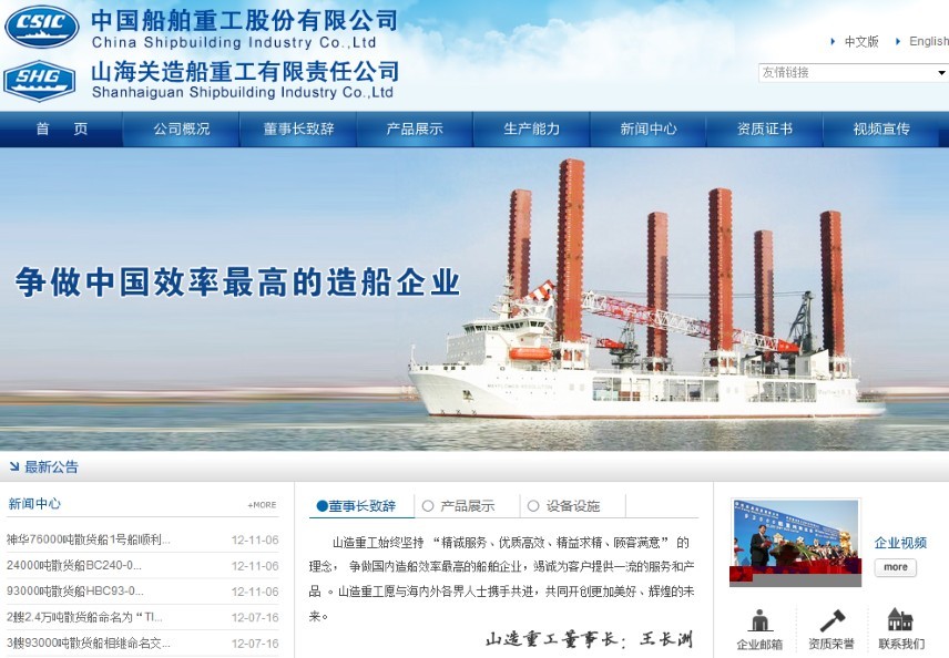 山海關(guān)造船重工有限責(zé)任公司(山造重工)由山海關(guān)船舶重工有限責(zé)任公司、河北省建設(shè)投資公司、秦皇島首秦金屬材料有限公司共同出資組建,2007年5月30日公司注冊(cè)成立,注冊(cè)資本11.8億元。山造重工是山船重工控股的子公司,山船重工是中國(guó)船舶重工集團(tuán)公司所屬的國(guó)有大型一類(lèi)企業(yè)。