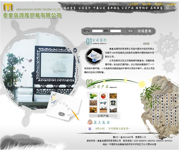 公司總部設立在北方海濱城市秦皇島。優(yōu)越的地理環(huán)境,發(fā)達的交通網(wǎng)絡,為公司的發(fā)展提供了一個良好的外部環(huán)境。一大批具有實踐經(jīng)驗的中青年外貿(mào)技術骨干,成為公司發(fā)展的內(nèi)在動力和財富。